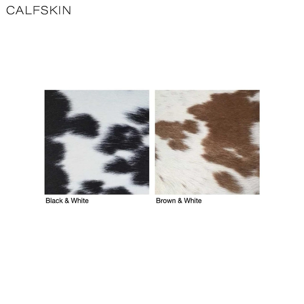 - Upholstery is available in Black & White or Brown & White Calfskin.